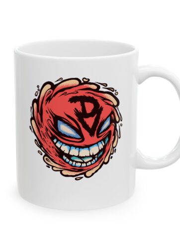 Warm-up with a nice cuppa out of this mug emblazoned with a new take on DV’s evil grin logo. It’s BPA and Lead-free, microwave & dishwasher-safe, and made of white, durable ceramic in an 11-ounce size. .: White ceramic .: 11 oz (0.33 l) .: Rounded corners .: C-handle .: