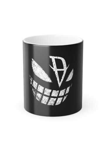 Personalized mugs are super popular gifts for friends and loved ones. This one changes color and will be the gift that keeps on giving. The heat-reactive surface reveals the evil DV grin when the mug gets warm. The ceramic cup will go back to its original black outside and white