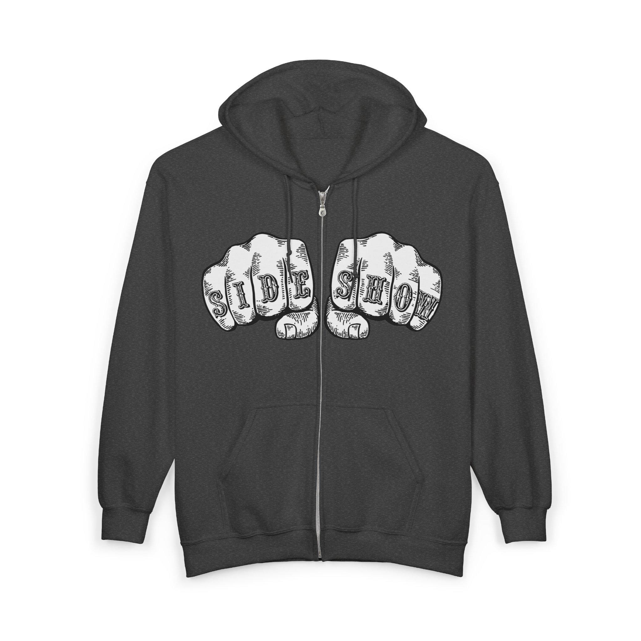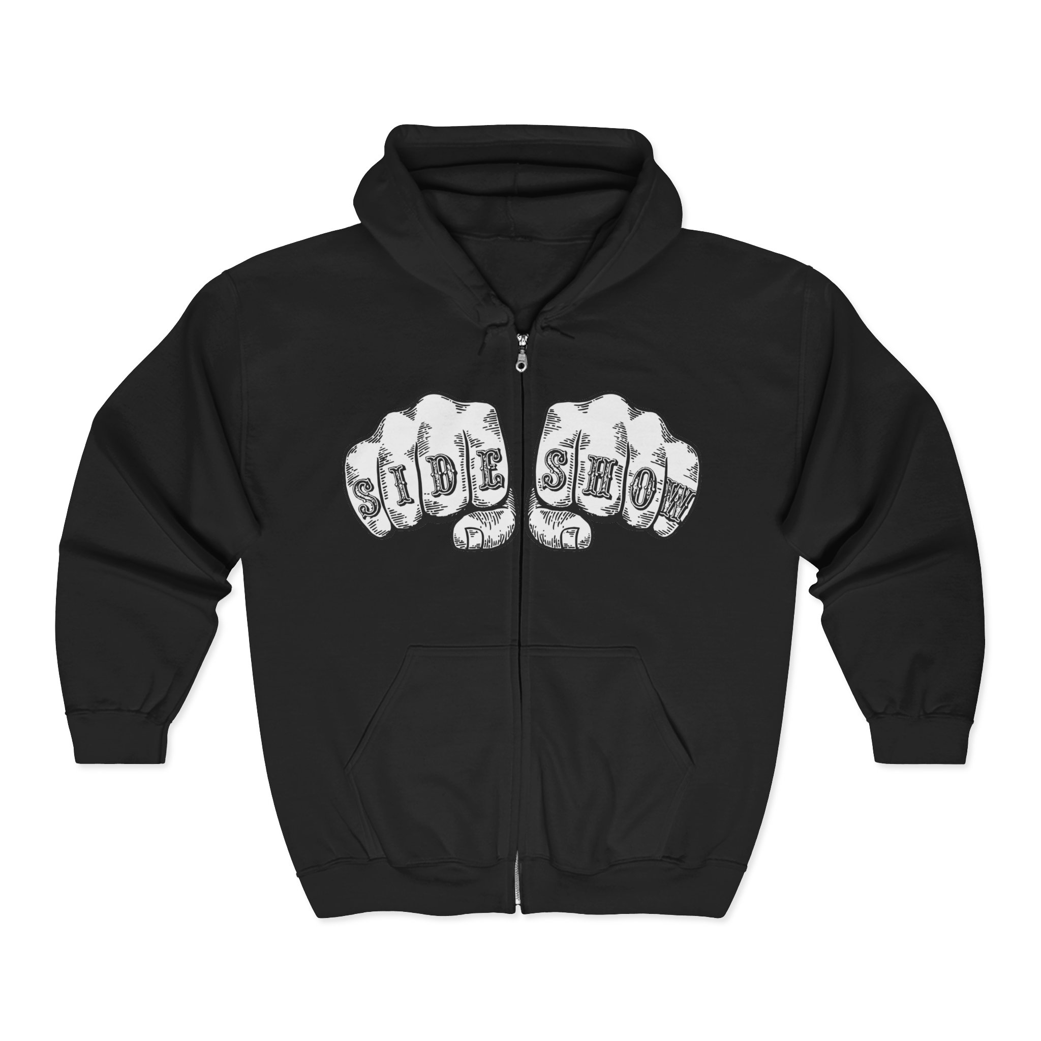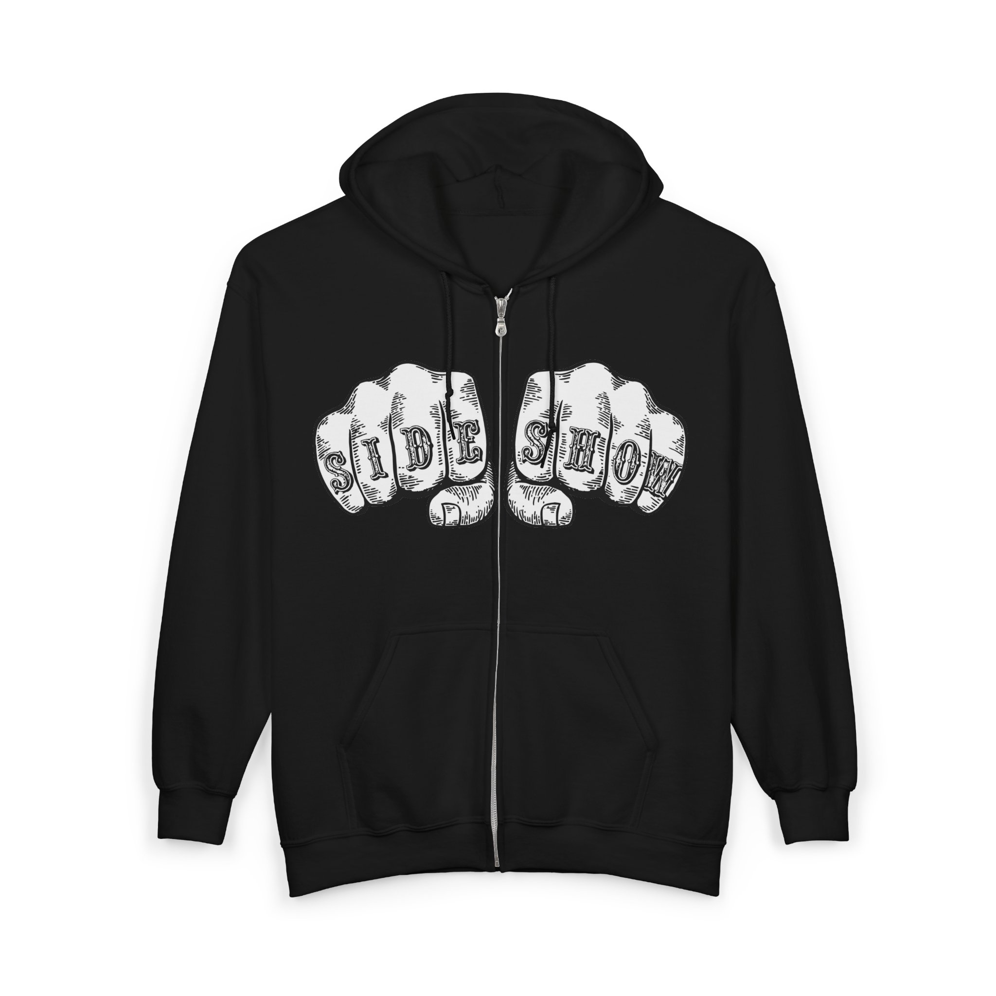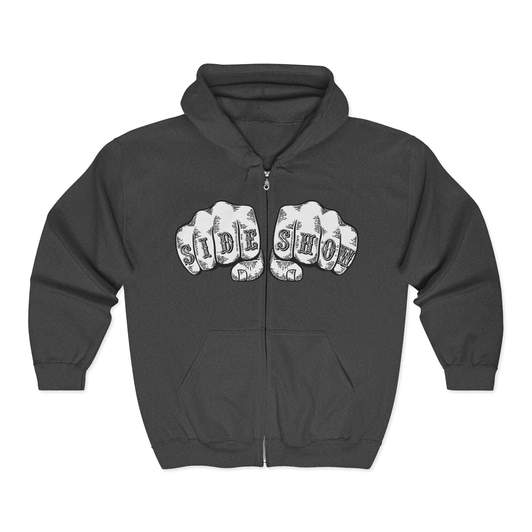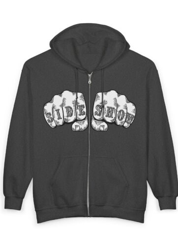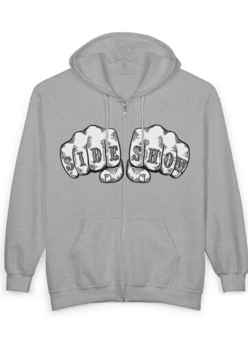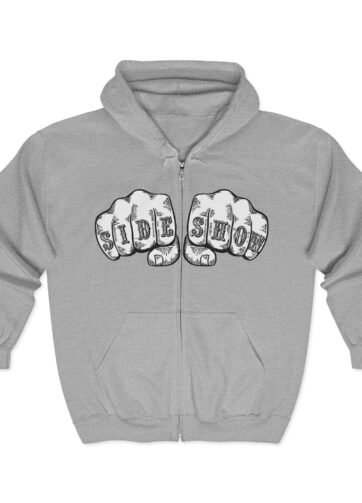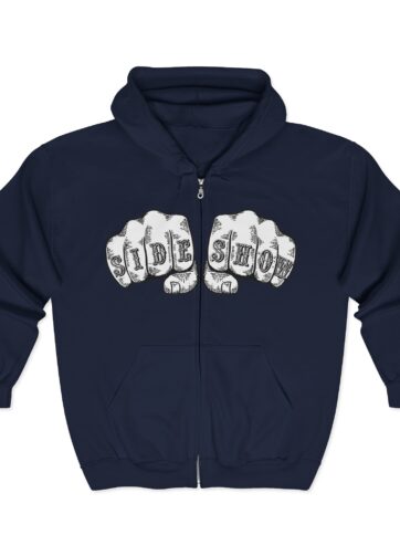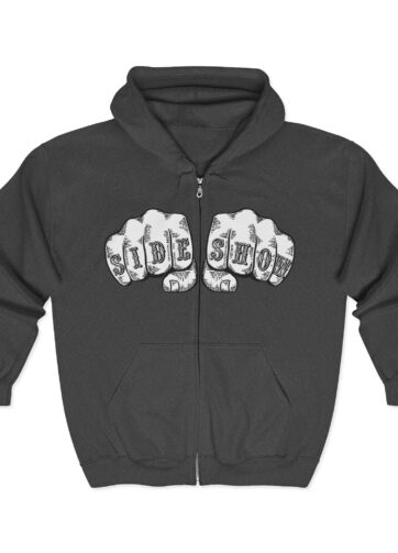 Let the world know you are a TRUE AND HONORABLE FREAK(tm). Front of shirt features SIDE SHOW on fists about to meet some poor sucker’s face. Back of shirt features DV’s new logo variation in white.