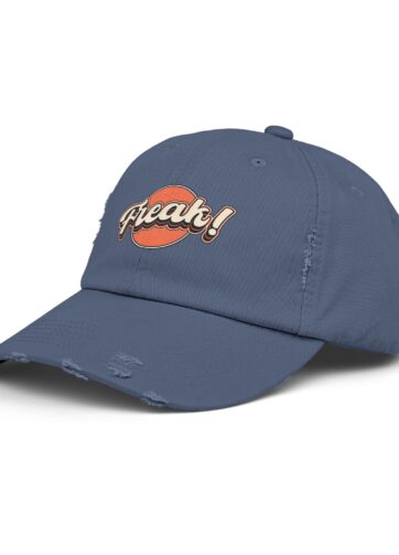 Hat has printed “FREAK” Design. Made with 100% cotton twill for high-end comfort and durability, these custom distressed hats bring all the style and practicality one needs in daily life. The low profile along with the D-ring closure on a self-fabric hideaway strap ensures both proper protection from the sun